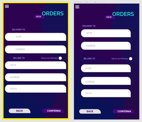 Margini. ossia il contorno del nostro schermo. Serve a dare “aria” e un senso di completezza alla nostra creazione. Se tasti e contenuti si riversano sul bordo del nostro dispositivo, percepiamo una sensazione di incompletezza e proseguo, come se ci fosse qualcosa nascosto, ancora da scoprire o in attesa di essere aggiunto. Spesso viene percepito come un malfunzionamento.